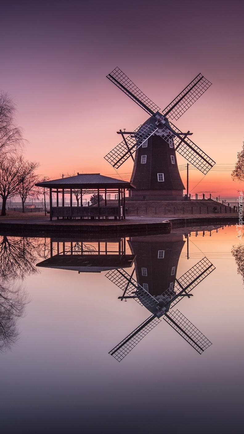 Edytor tapety: Wiatrakowe odbicie w jeziorze