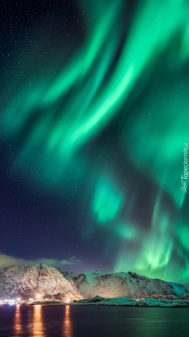 Edytor tapety: Zorza polarna nad wyspą Flakstadoya