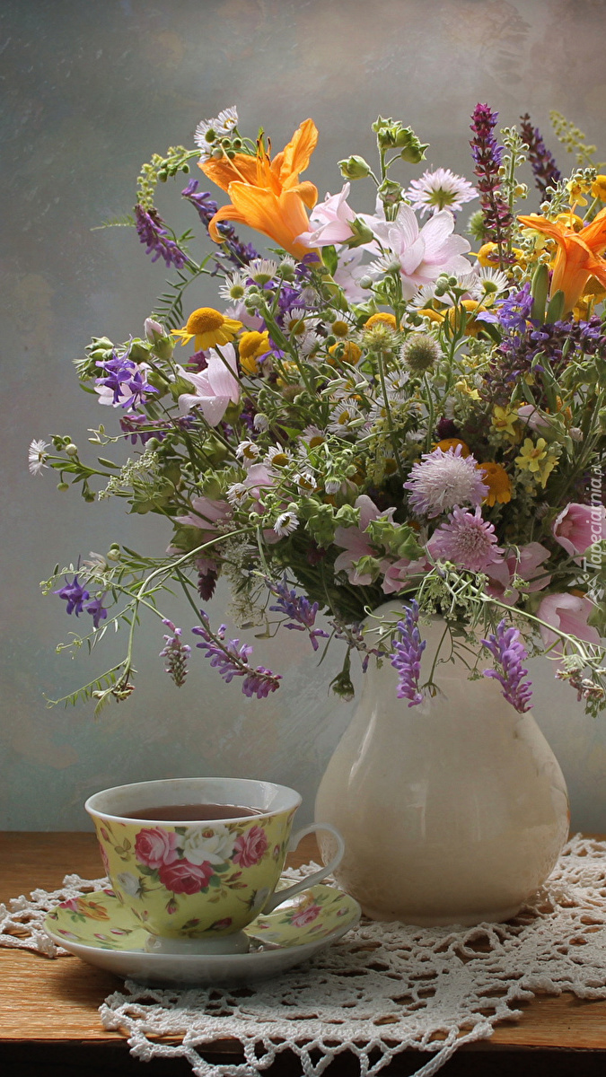 Edytor tapety: Polne kwiaty w wazonie