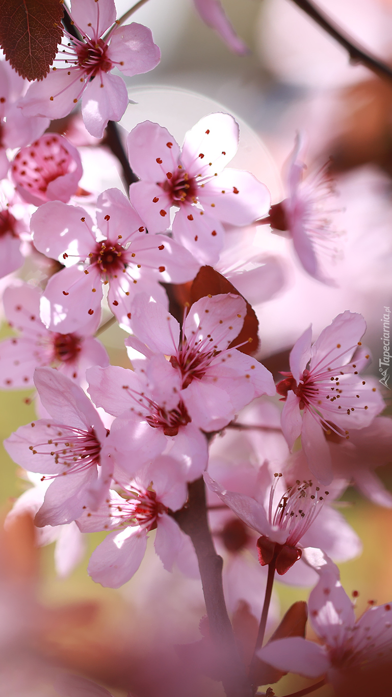 Edytor tapety: Bladoróżowe kwiaty drzewa owocowego