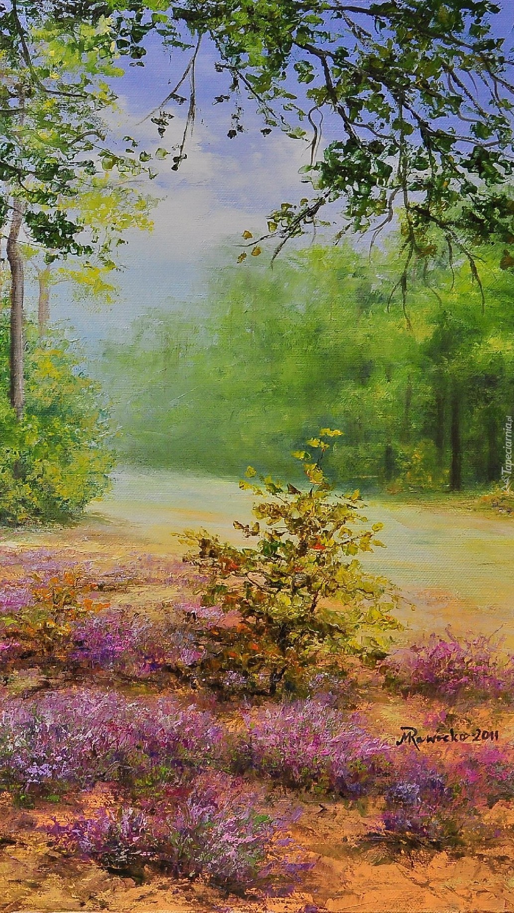 Edytor tapety: Wrzosy w lesie spod ręki malarza