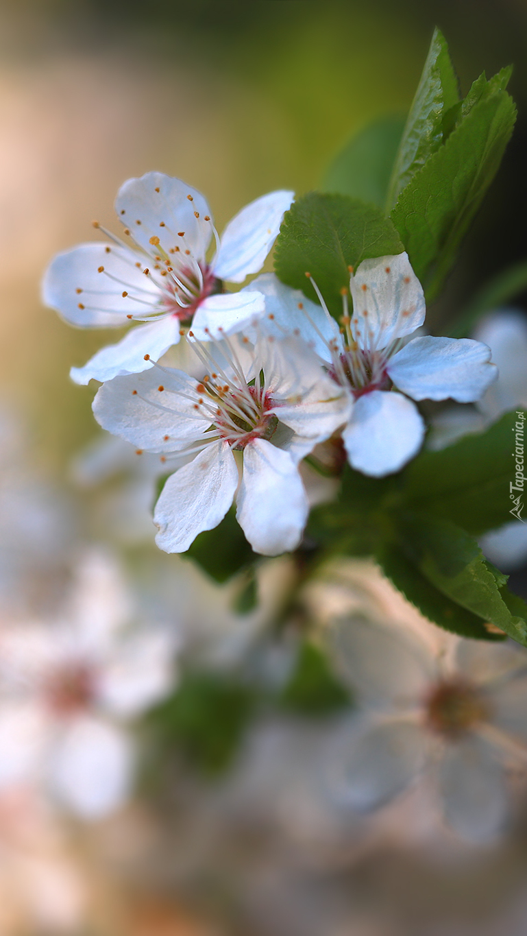 Edytor tapety: Białe kwiaty drzewa owocowego