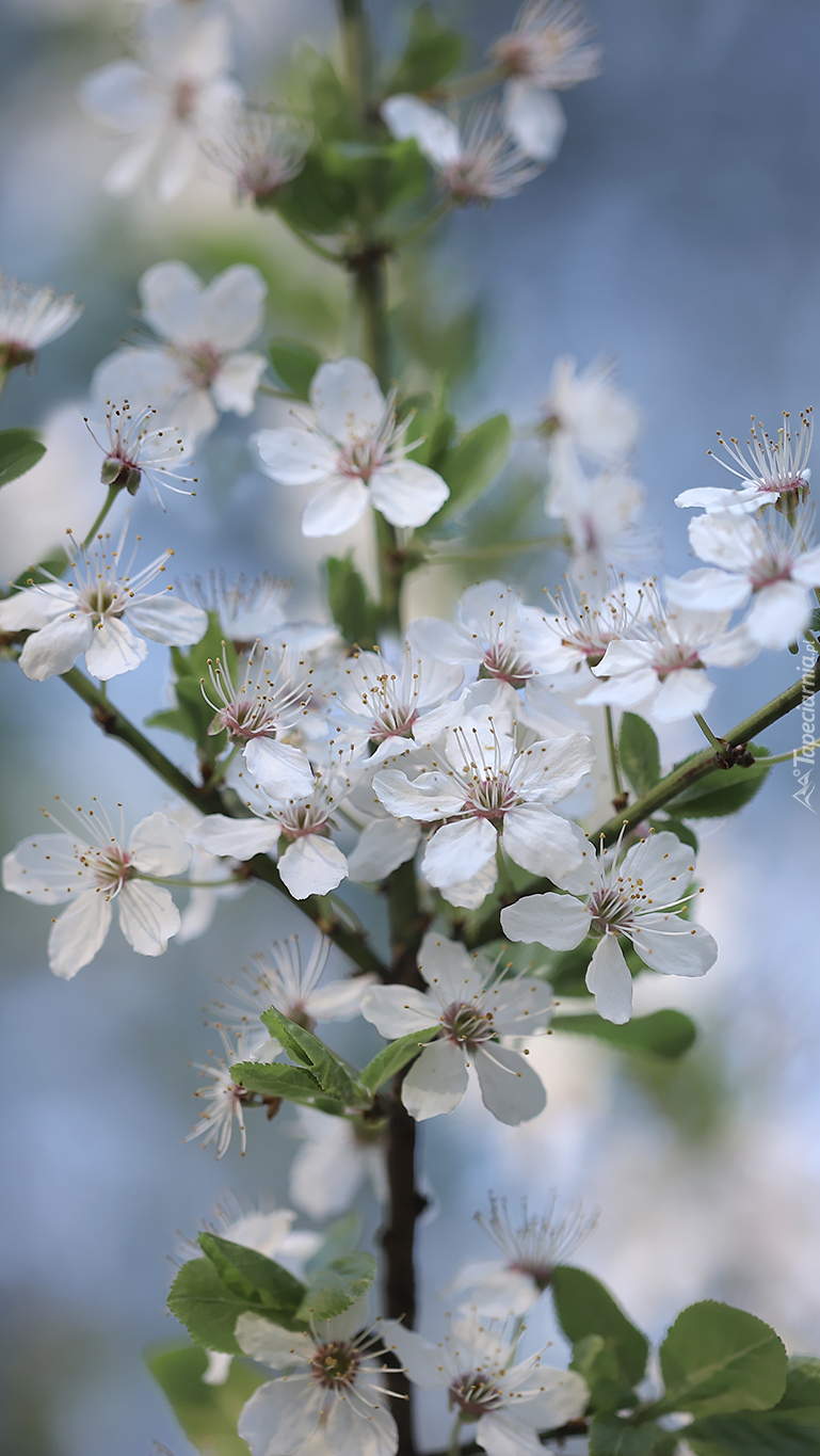 Edytor tapety: Gałązka z białymi kwiatami