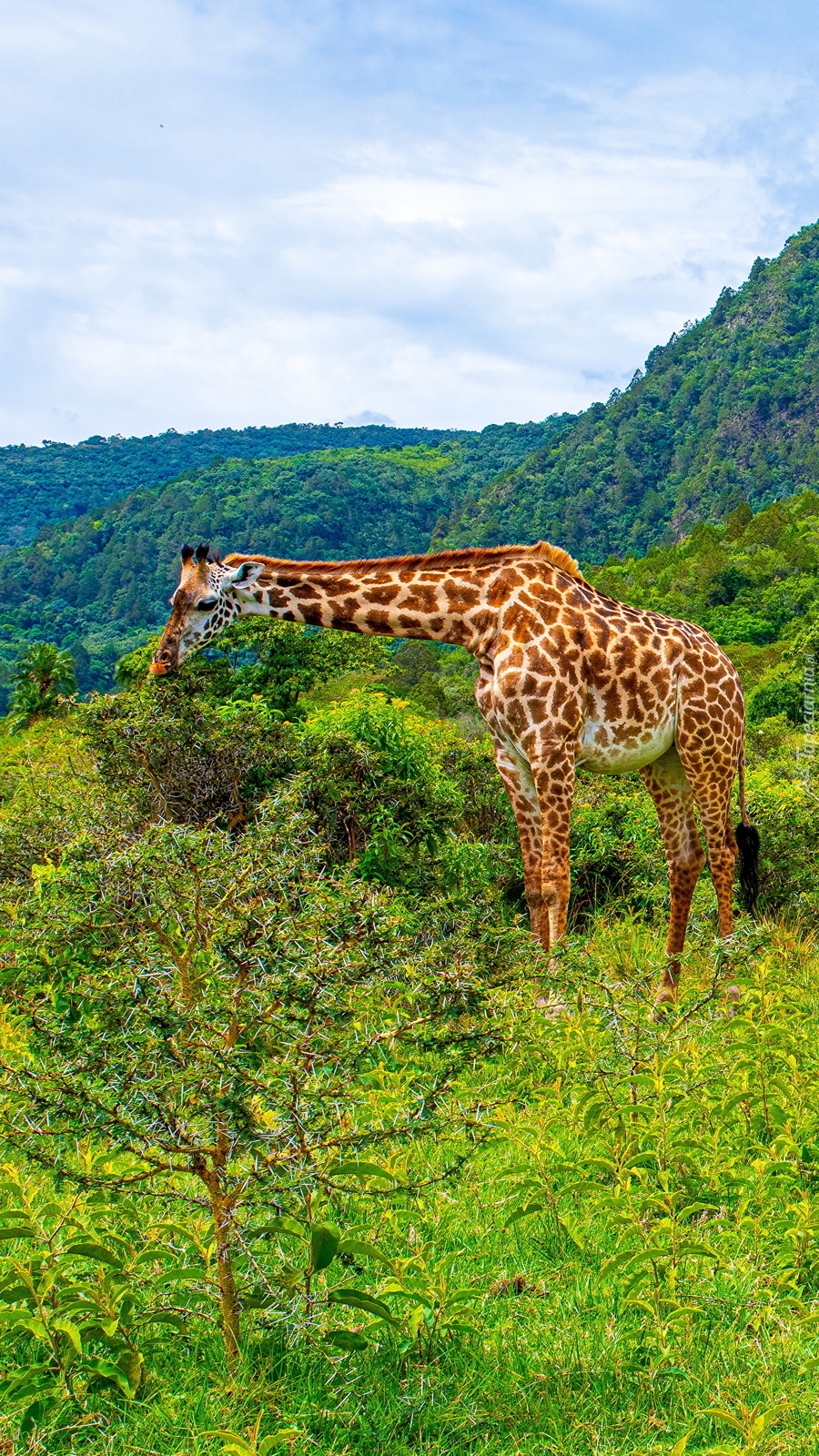 Edytor tapety: Żyrafa wśród roślin