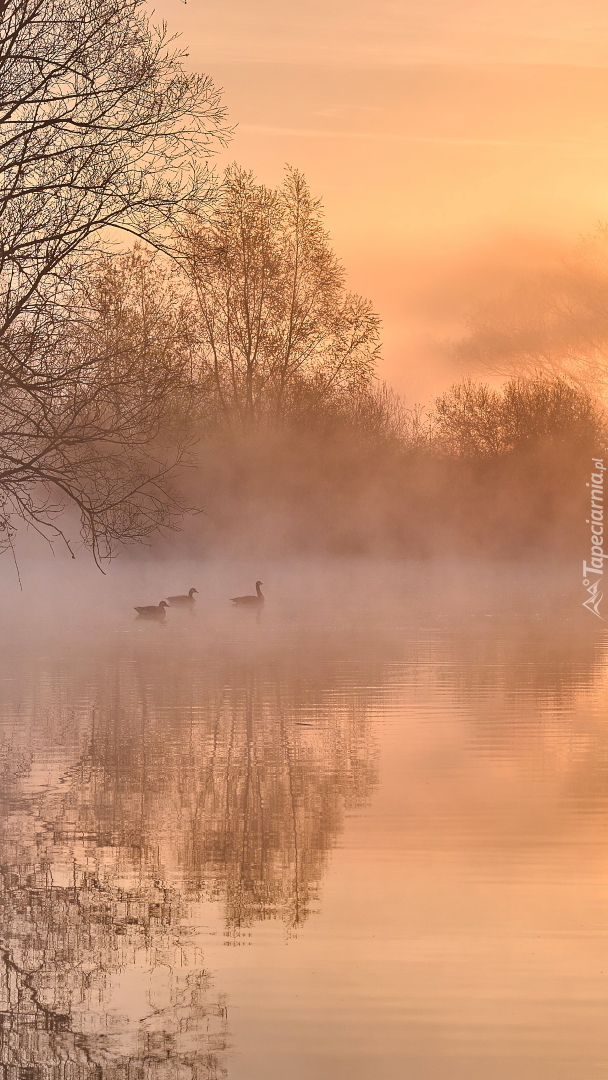Edytor tapety: Kaczki na zamglonym stawie