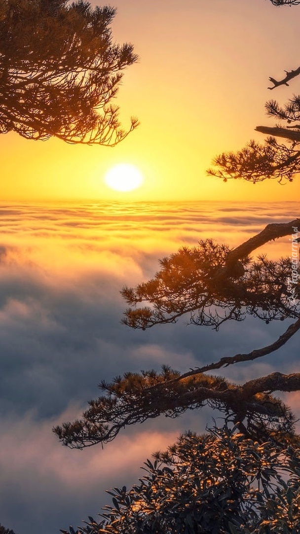 Edytor tapety: Słońce nad gęstą mgła