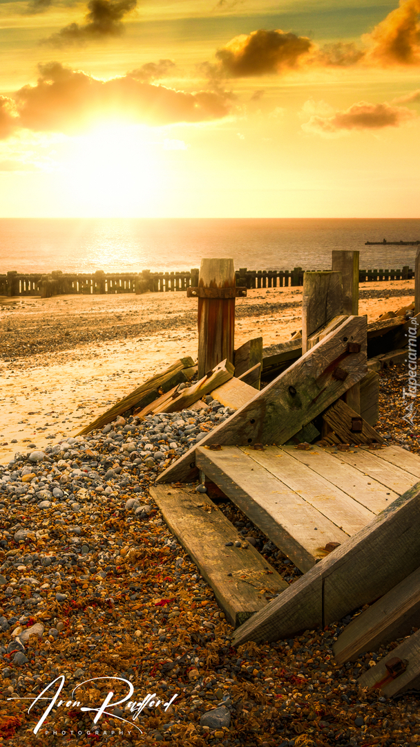 Edytor tapety: Drewniane schody na morskiej plaży