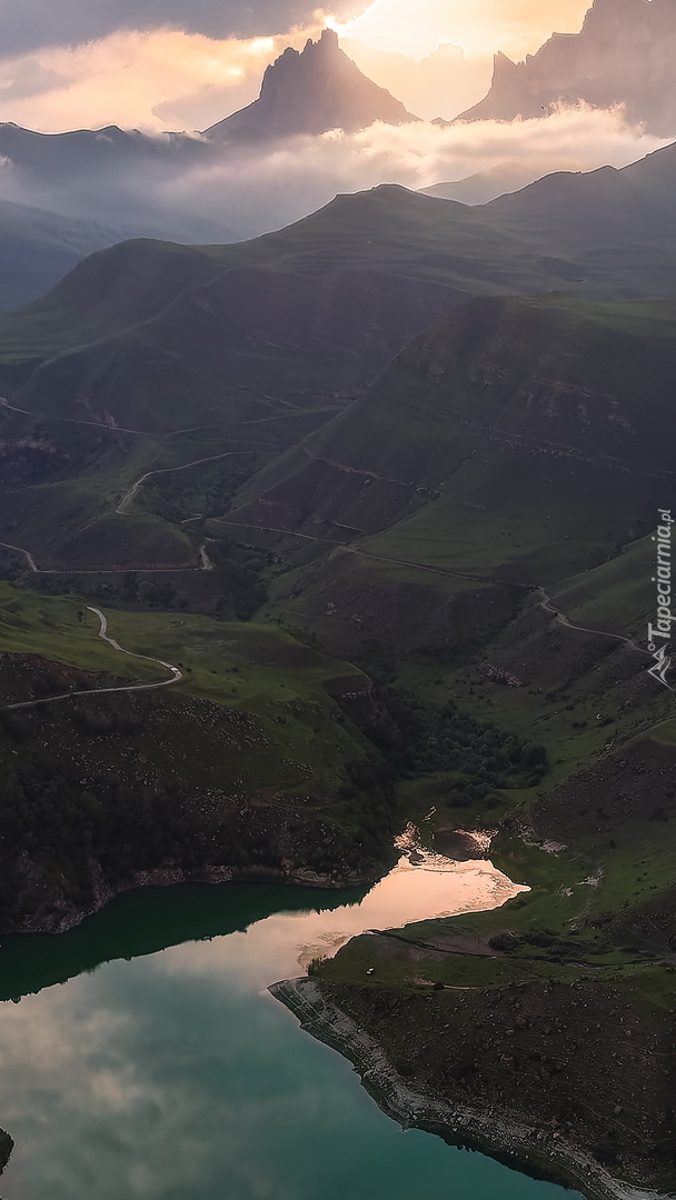 Edytor tapety: Droga w górach nad jeziorem