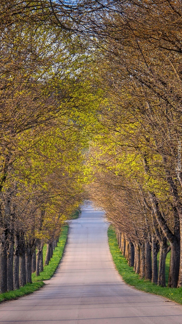 Edytor tapety: Drzewa posadzone wzdłuż drogi