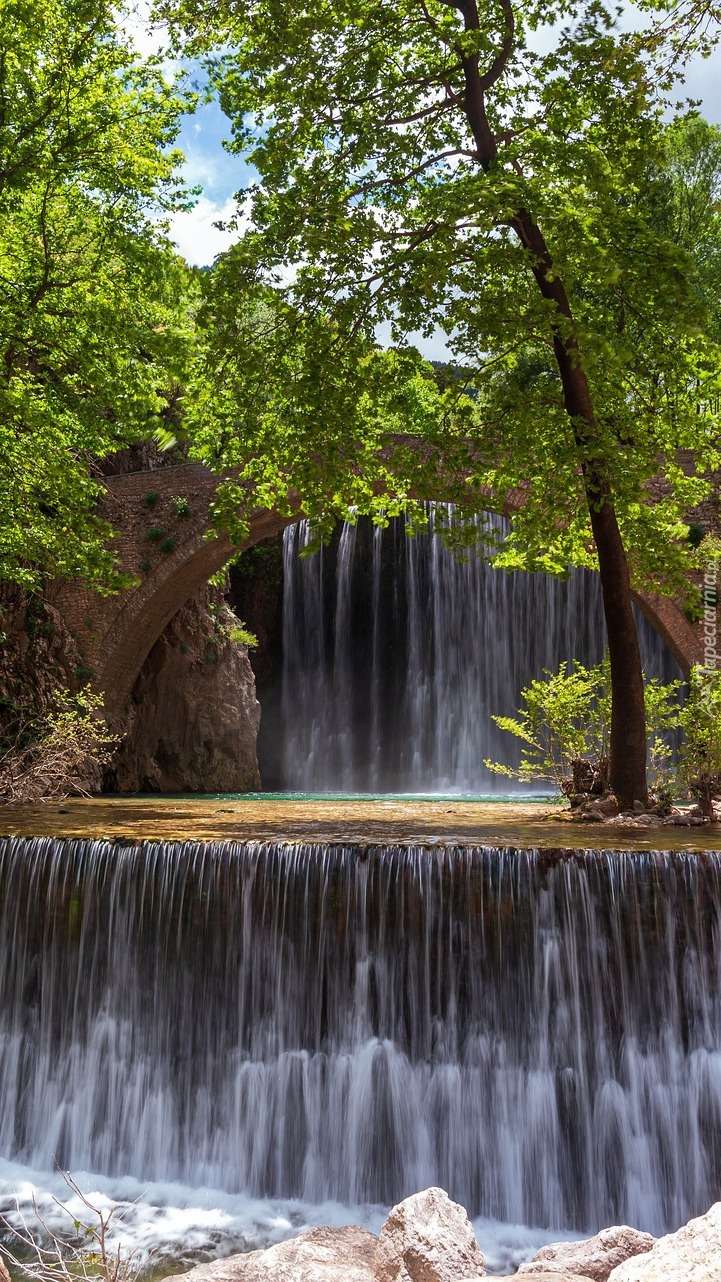 Edytor tapety: Most Palaiokarya i wodospad w Grecji