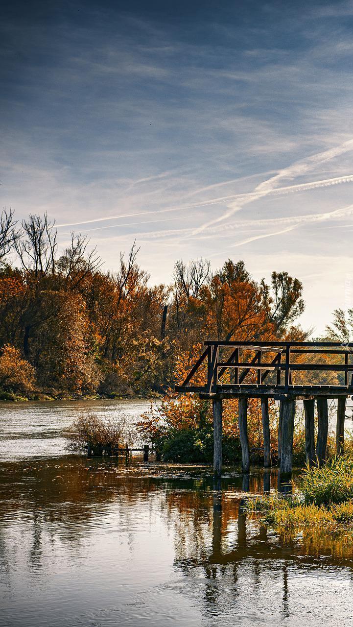Edytor tapety: Jesienne drzewa i pomost nad jeziorem
