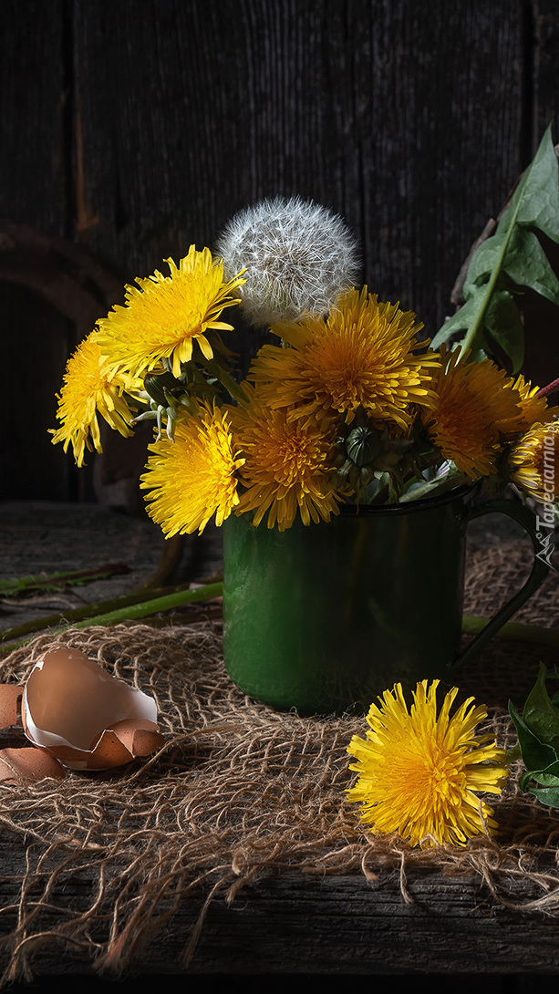 Edytor tapety: Kwiaty mniszka i skorupki z jajek
