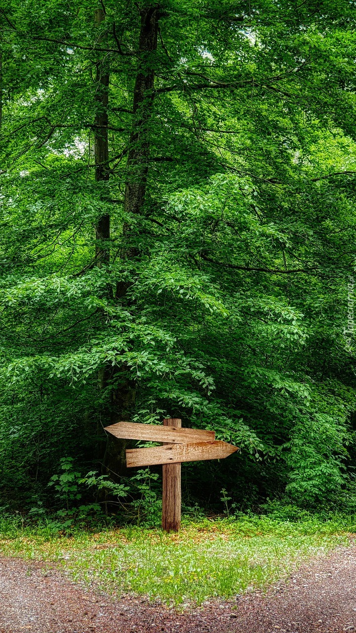 Edytor tapety: Drogowskaz w lesie