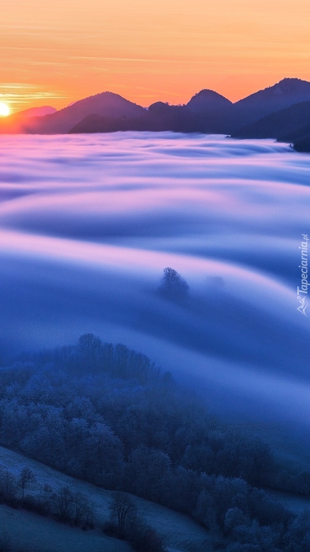 Edytor tapety: Gęsta mgła nad górami i lasami