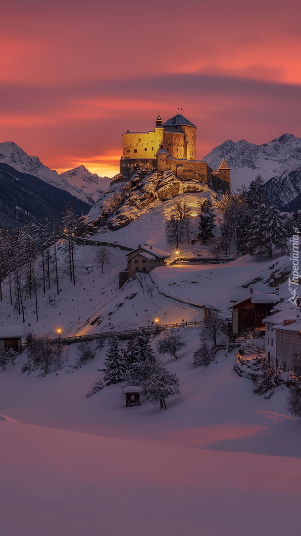 Edytor tapety: Zamek Tarasp w Szwajcarii zimową porą