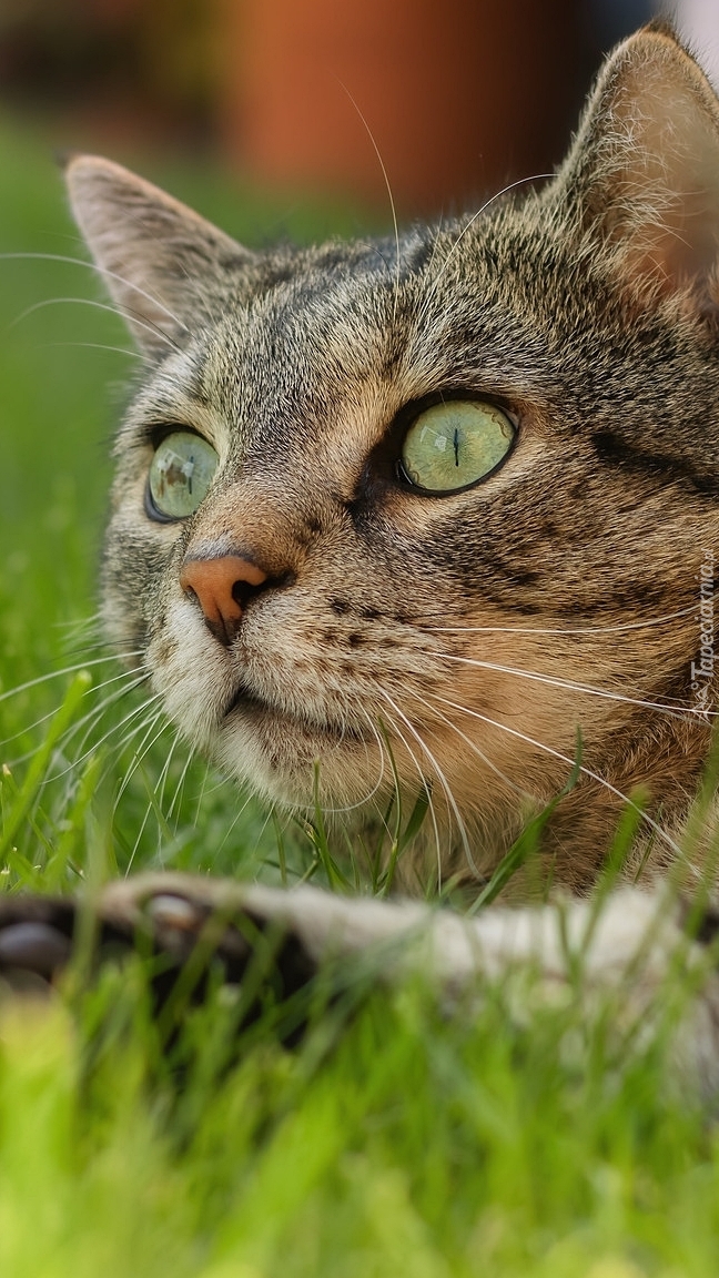 Edytor tapety: Mordka burego zielonookiego kota