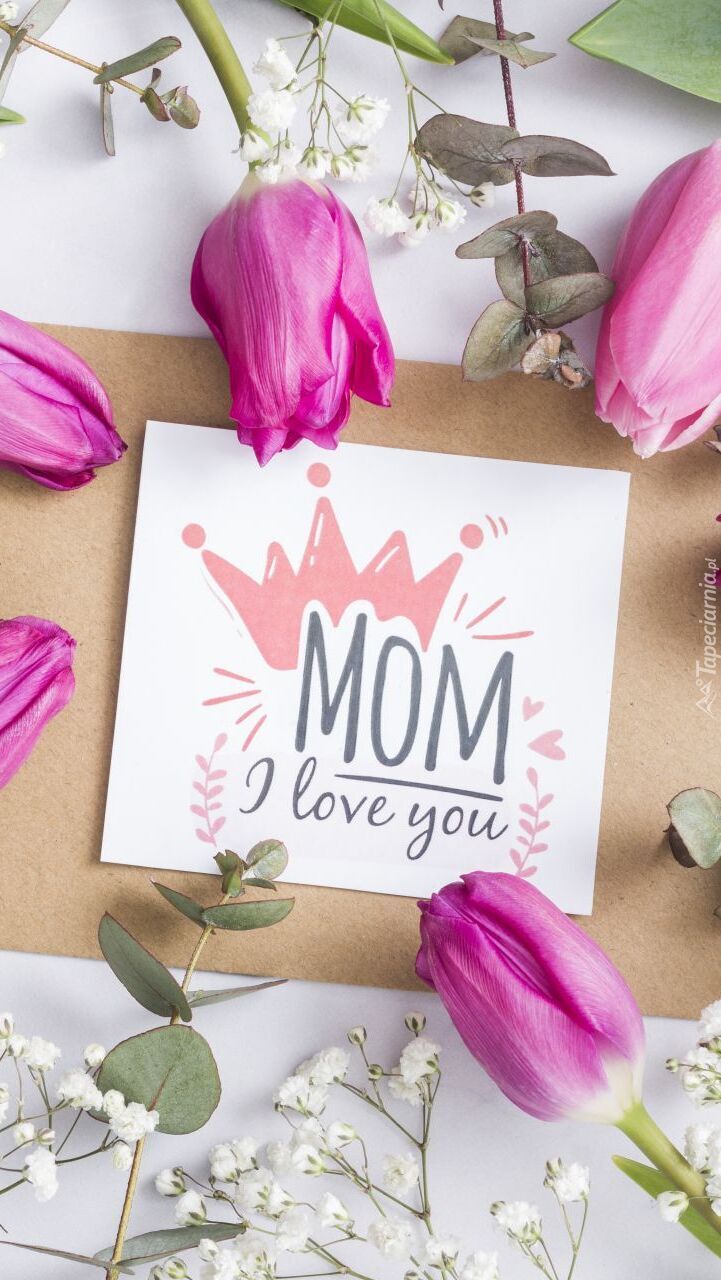 Edytor tapety: Tulipany wokół kartki na Dzień Matki