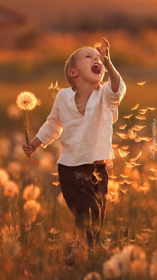 Edytor tapety: Chłopiec z dmuchawcem w ręku