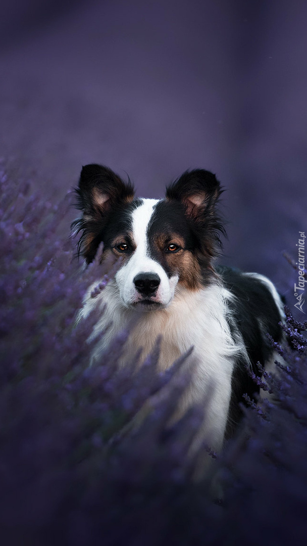 Edytor tapety: Pies na polu lawendy