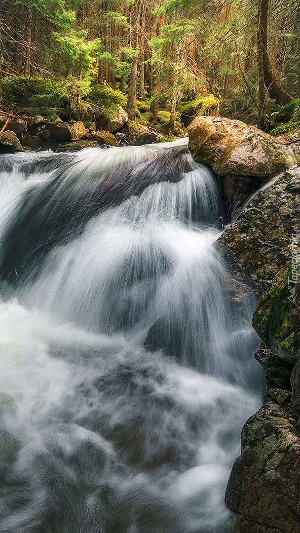 Edytor tapety: Skały na brzegu rzeki w lesie