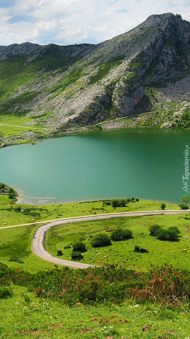 Edytor tapety: Droga przy jeziorze Enol Lake