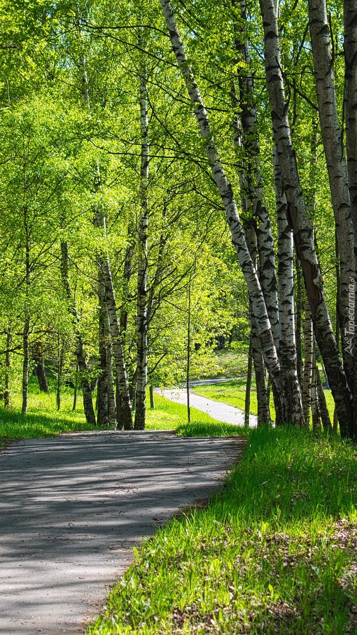 Edytor tapety: Brzozy przy alejce