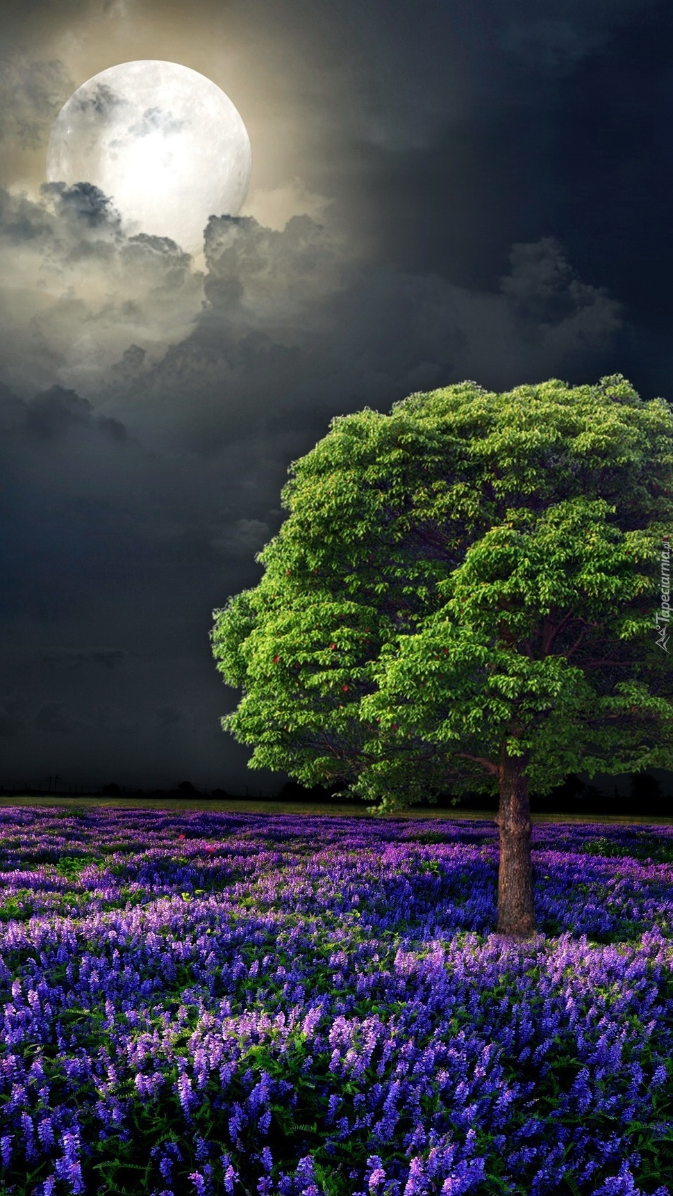 Edytor tapety: Księżyc w pełni nad łąką