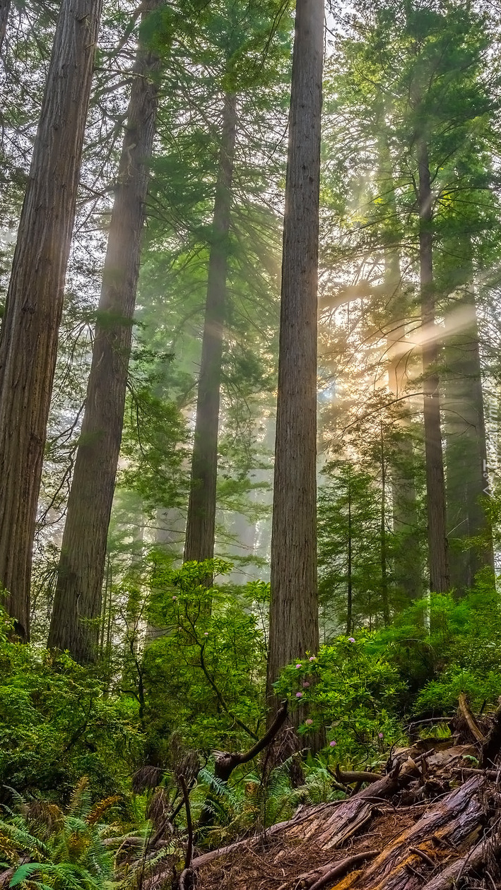 Edytor tapety: Rozświetlone sekwoje w Parku Narodowym Redwood