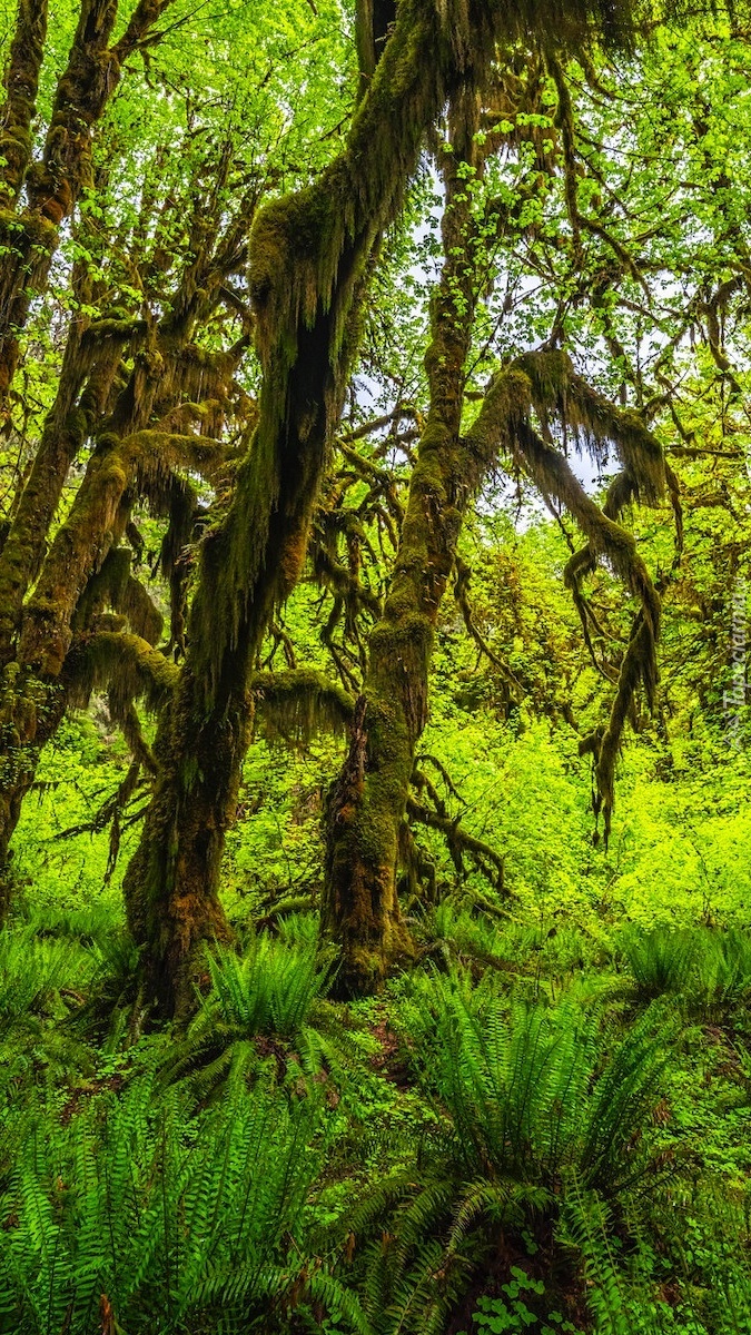 Edytor tapety: Paprocie pod omszałymi drzewami