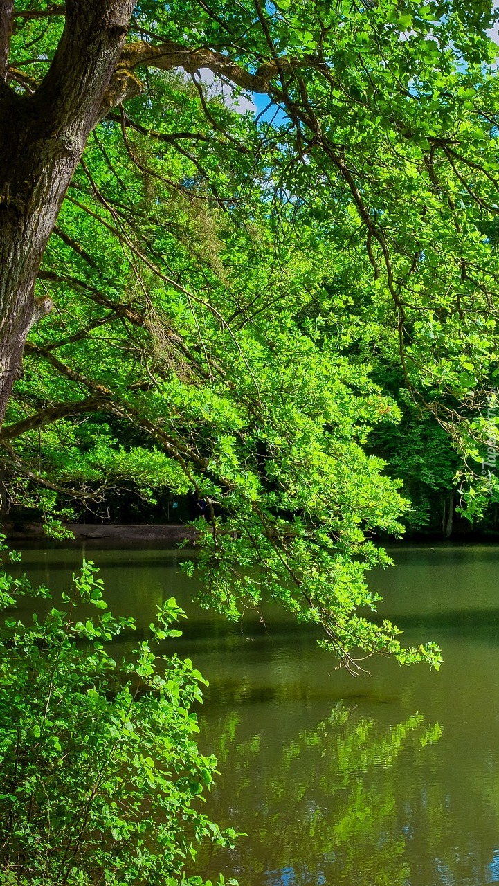 Edytor tapety: Zielone drzewa nad jeziorem