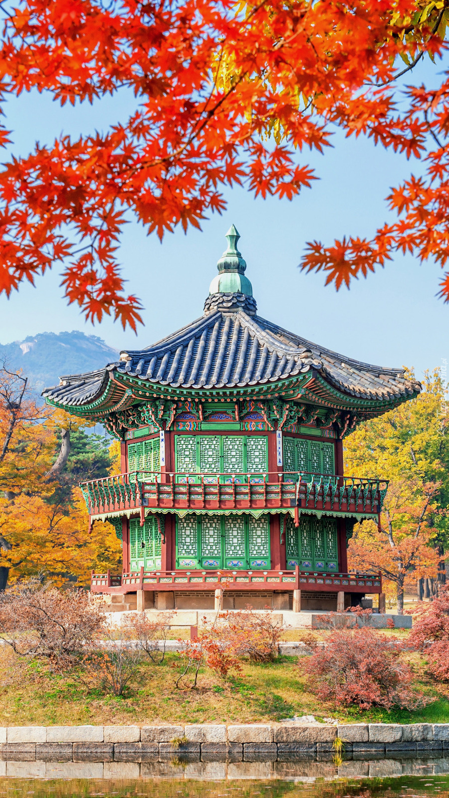 Edytor tapety: Park i pawilon Hyangwonjeong w Seulu