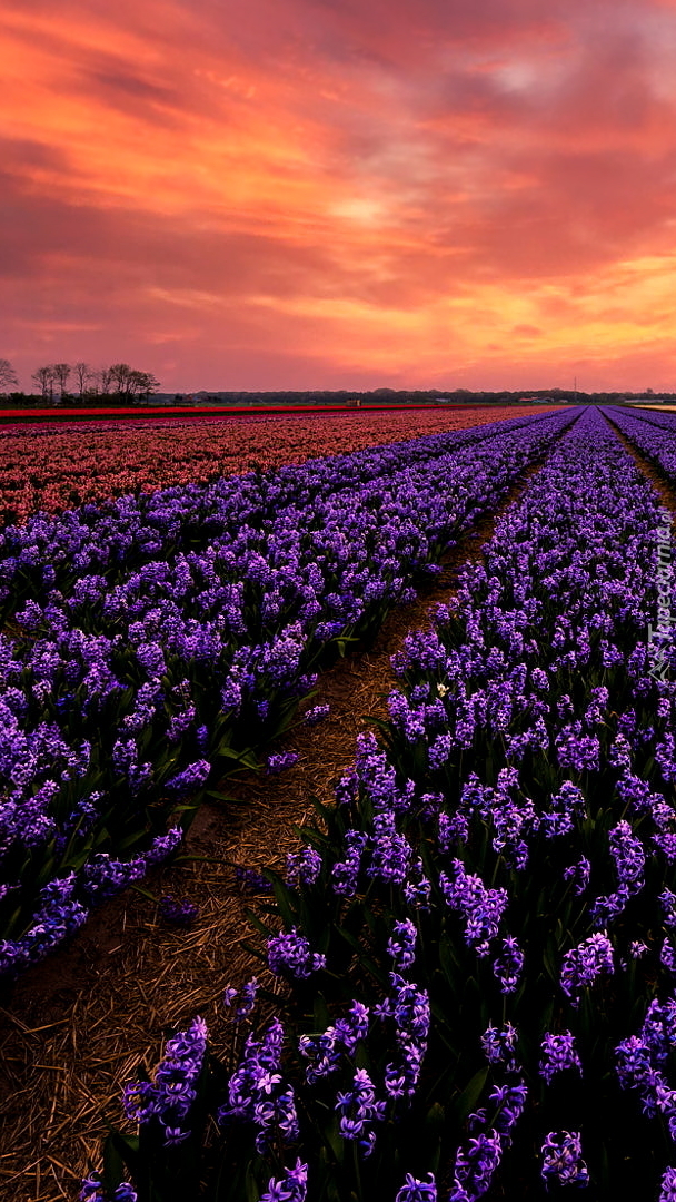 Edytor tapety: Hiacynty pod kolorowym niebem