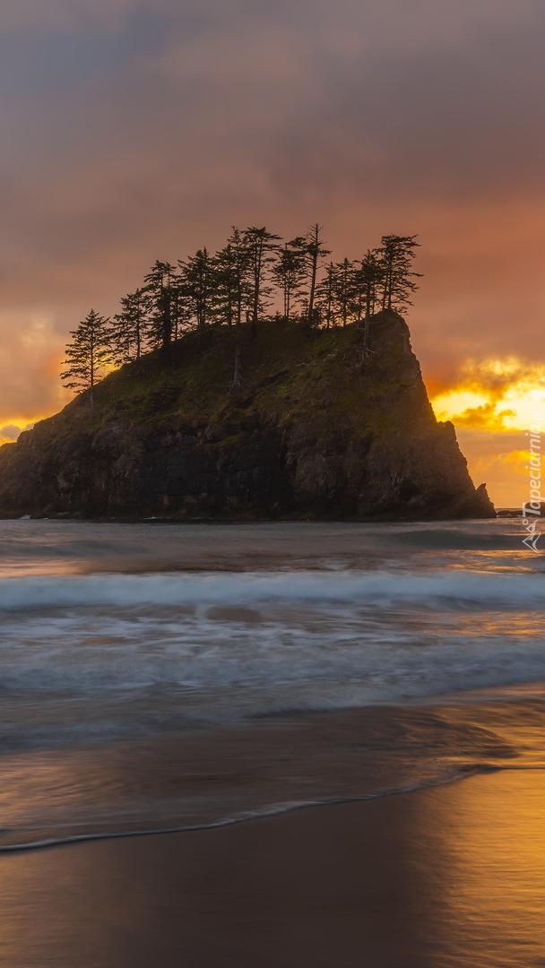 Edytor tapety: Drzewa na skale nad morzem