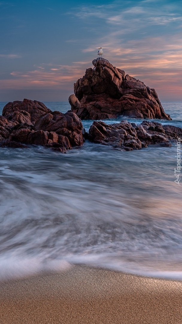 Edytor tapety: Mewa na skałach w morzu
