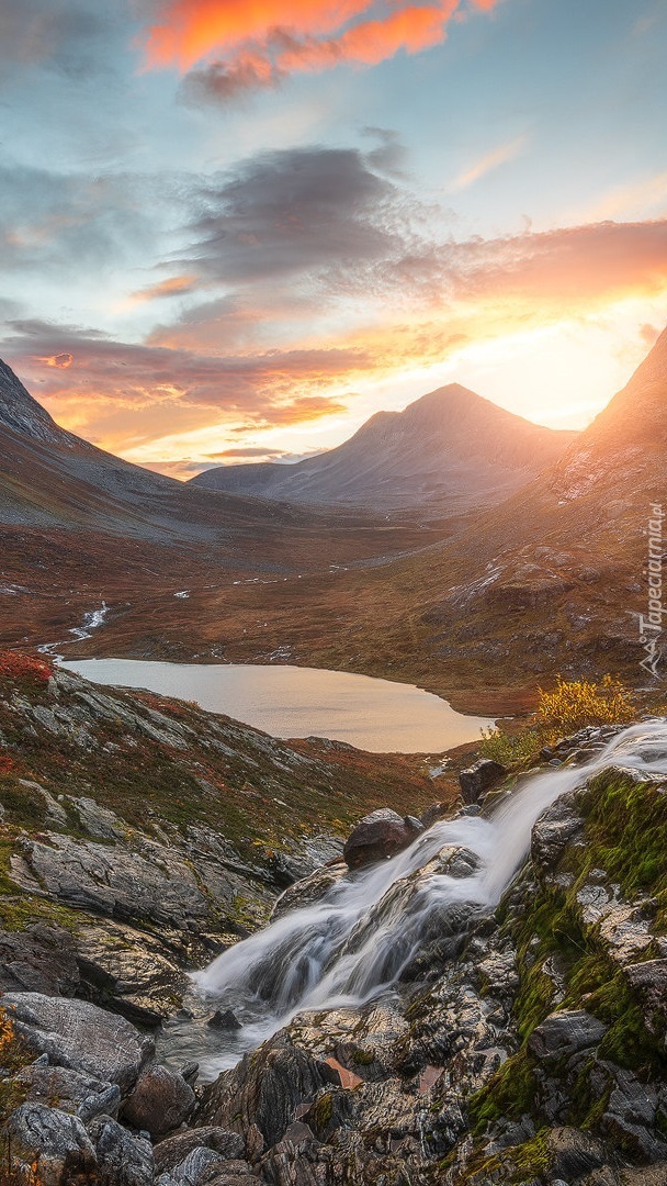 Edytor tapety: Jezioro i potok w dolinie Romsdalen