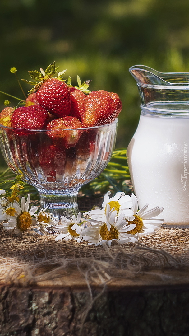 Edytor tapety: Truskawki obok mleka w dzbanku