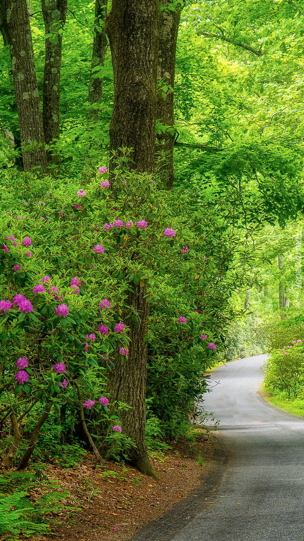 Edytor tapety: Różanieczniki w lesie przy drodze