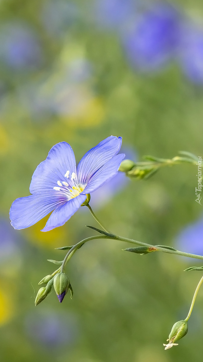 Edytor tapety: Kwiat lnu z pąkami w zbliżeniu