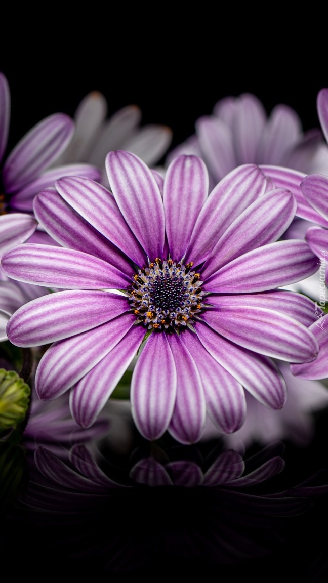 Edytor tapety: Stokrotki afrykańskie na czarnym tle