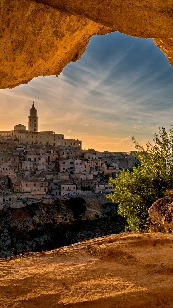 Edytor tapety: Panorama miasteczka Matera we Włoszech