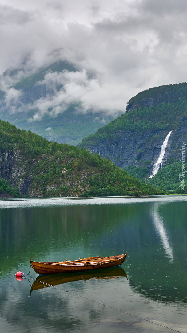 Edytor tapety: Łódka na fiordzie Lustrafjorden