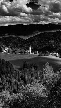 Edytor tapety: Kościół i domy w Heiligenblut am Groglockner