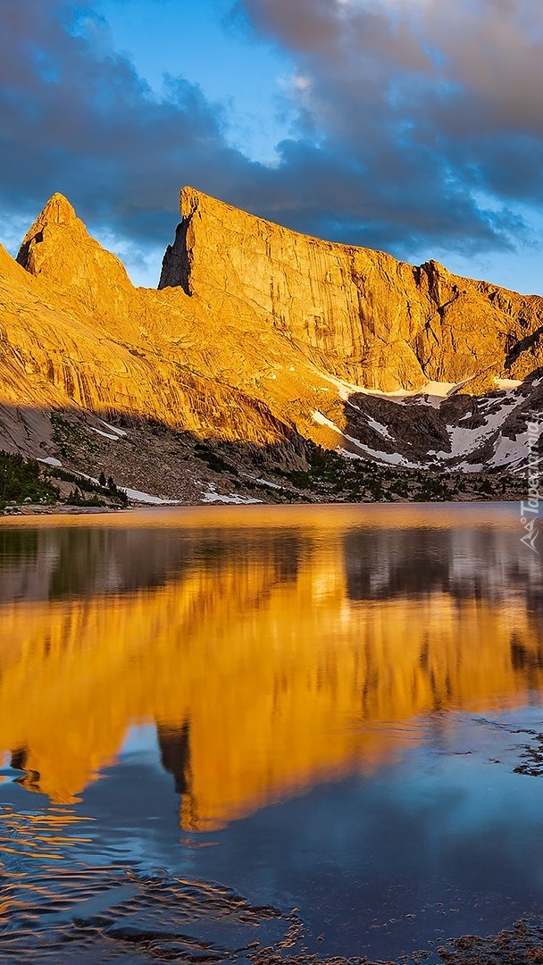 Edytor tapety: Rozświetlone góry nad rzeką Wind River