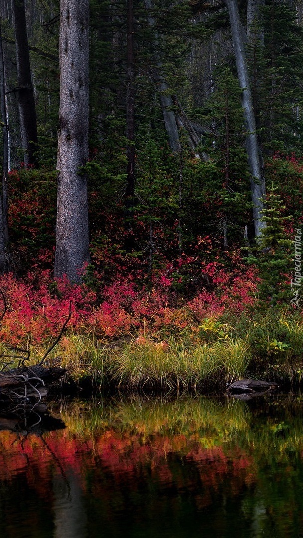 Edytor tapety: Kolorowe krzewy pod drzewami