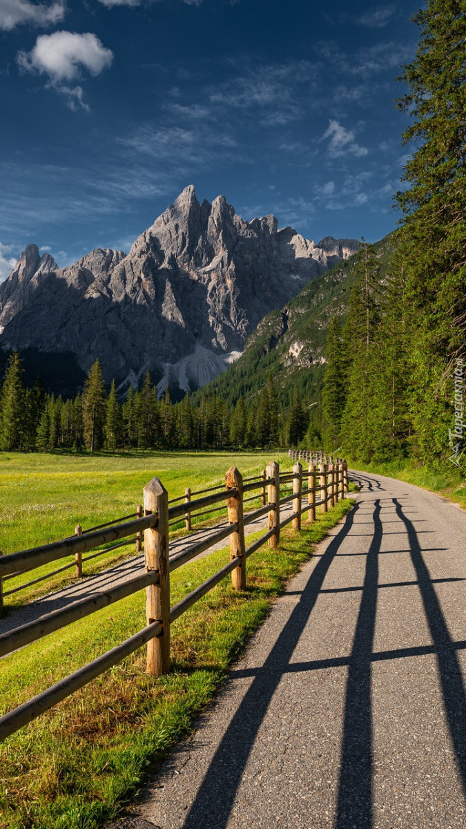 Edytor tapety: Ogrodzenie i droga na tle gór