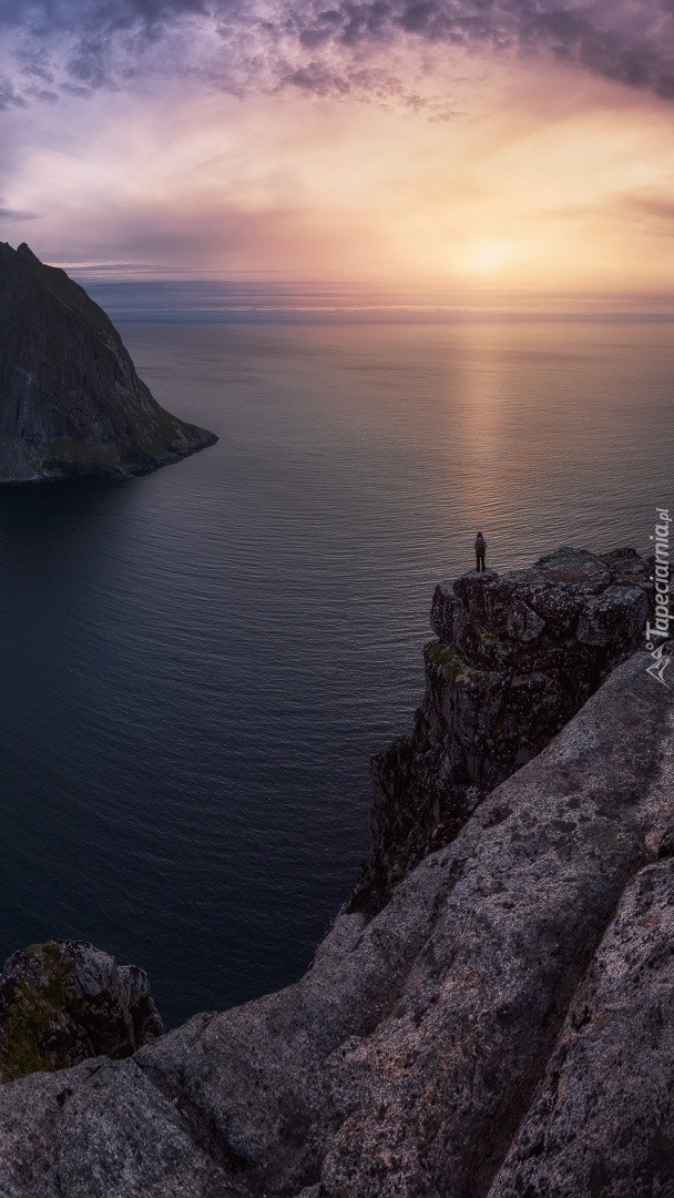 Edytor tapety: Człowiek na skale nad morzem