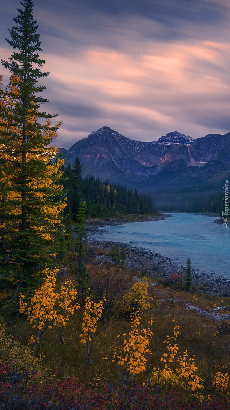 Edytor tapety: Pożółkłe drzewa nad rzeką Athabasca River