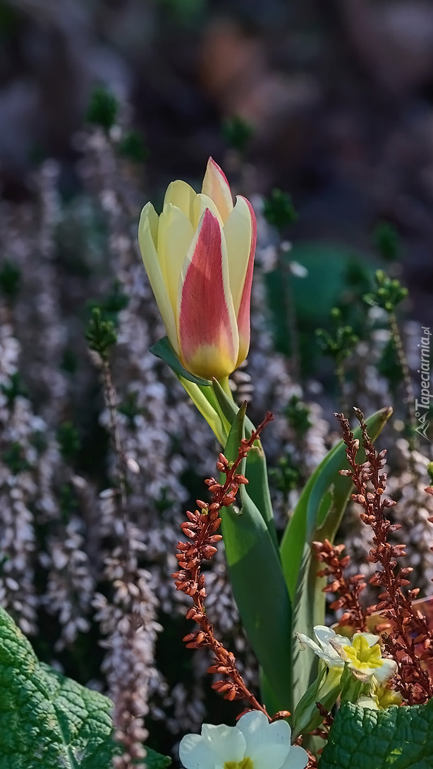 Edytor tapety: Dwukolorowy tulipan i wrzosy
