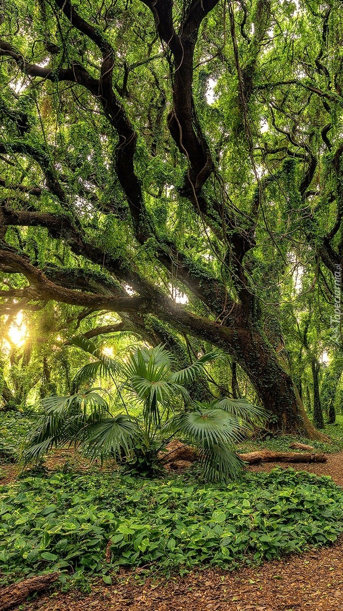 Edytor tapety: Roślinność pod omszałymi drzewami