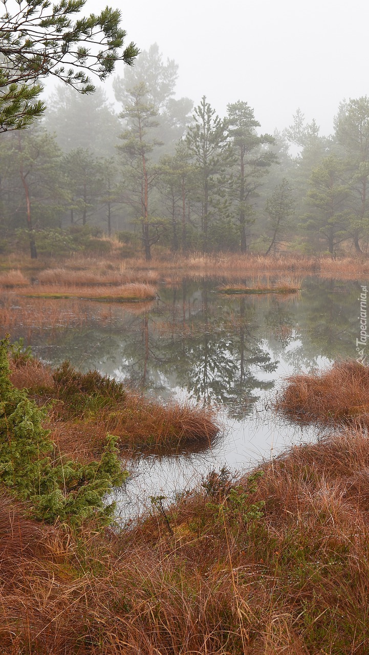 Edytor tapety: Kępki traw na zamglonym stawie